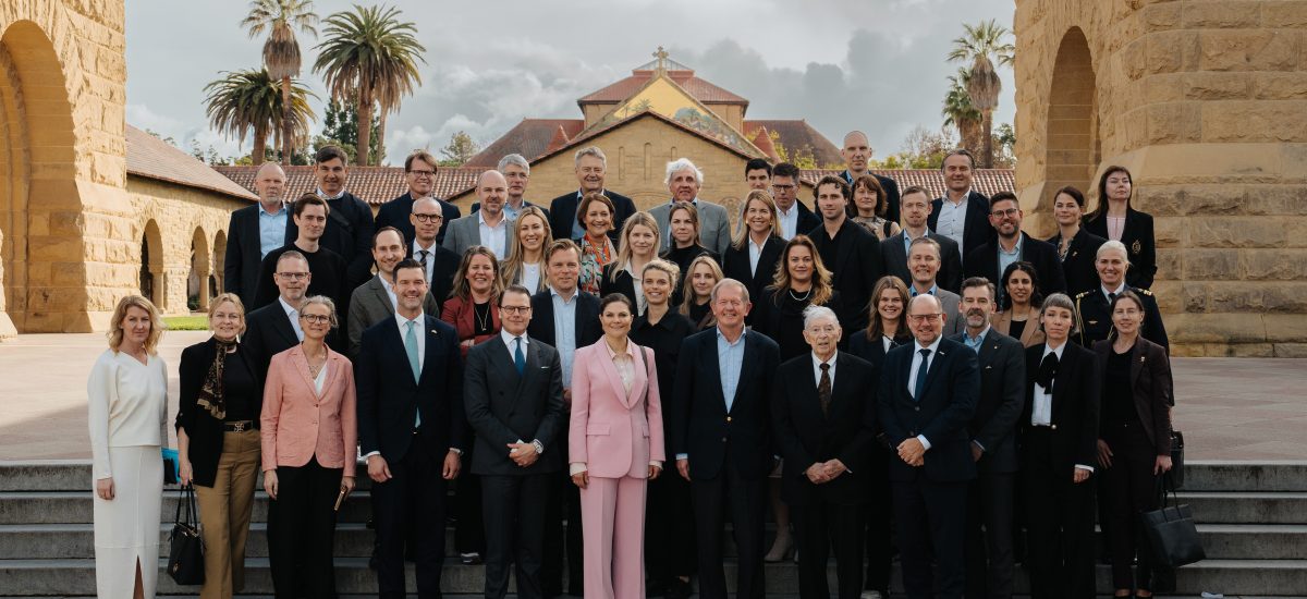 Top image: The Crown Princess Couple with Consul General Anna Lekvall, Minister Johan Forssell, Marcus Wallenberg, Professor Emeritus Arthur Bienenstock, Ambassador Urban Ahlin, Director of Digital Futures Karl Henrik Johansson, and other participants during the visit to Stanford University (Photo: Clément Morin)