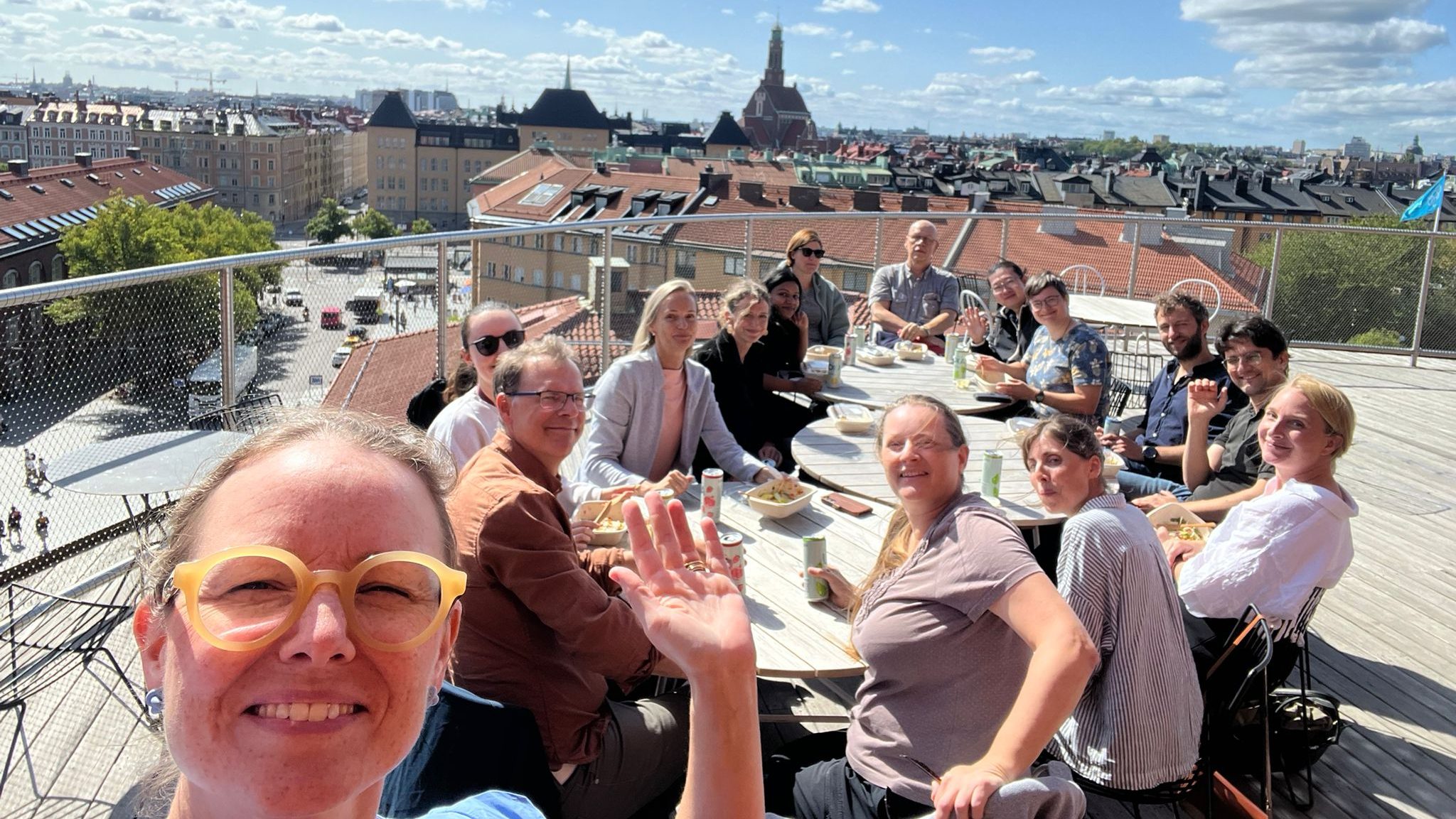 Ellen Bergseth with seminar participants taking a break at the top floor of the Architecture Building at KTH.